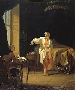 Er selbst hielt sich vermutlich in erster Linie für einen bedeutenden Dramatiker aufgrund seiner mehr als fünfzig Bühnenstücke, die teilweise sehr erfolgreich waren. Insbesondere die Tragödie Zaïre (1736) wurde mit großer Resonanz auch in Italien, Holland, England und Deutschland (1810 in Weimar von Goethe) aufgeführt,[37] sie gehörte mehr als 200 Jahre lang zum festen Repertoire des Théâtre français. Auch von den Zeitgenossen wurde er als würdiger Nachfolger der großen Tragöden Corneille und Racine anerkannt. Goethe übersetzte die Tragödien Mahomet und Tancrède.