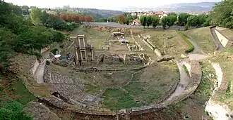 - Außerhalb der mittelalterlichen Porta Fiorentina liegt das Teatro Romano, erbaut zur Zeit des Kaisers Augustus. Von der Zuschauertribüne für etwa 2000 Personen blickt man auf die teilweise rekonstruierte Bühnenwand. Die unterhalb des Theaters liegenden Thermenanlagen stammen aus späterer Zeit.