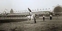 Ein Jahrhundert später war das Voltigieren nicht mehr nur Bestandteil der militärischen Ausbildung. Ein Höhepunkt des Voltigierens war die einmalige Teilnahme an den Olympischen Spielen 1920 in Antwerpen. Unter dem Namen Kunstreiten traten Kavalleristen aus verschiedenen Ländern gegeneinander an. Es mussten in Einzel- und Mannschaftswettkämpfen Sprünge auf gesattelten und ungesattelten Pferden sowie in allen möglichen Gangarten ausgeführt werden. Jeweils drei Mann waren in einer Gruppe vertreten. In den Einzelwettkämpfen gewann der Belgier Bouckaert. Nach ihm kam Field für Frankreich und Finet für Belgien. In der Mannschaftswertung gewannen die Belgier vor Frankreich und Schweden.[19]