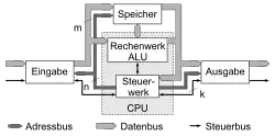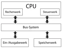 Ein Von-Neumann-Rechner beruht auf folgenden Komponenten, die bis heute in Computern verwendet werden: