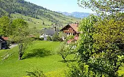 Ein Sühnekreuz aus dem Jahr 1550 ist im Ort in eine betonierte Gartenmauer eingelassen. Der Ortskern ist in traditioneller Allgäuer Bauweise architektonisch geschlossen.