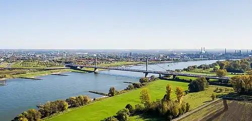 Als Vorlandbrücke bezeichnet man den Abschnitt einer über einen Fluss oder eine Meerenge führenden Brücke, der noch an Land steht.[1][2] Der Teil der Brücke, der über das Wasser führt, wird als Hauptbrücke, Flussbrücke oder Strombrücke[3] bezeichnet.