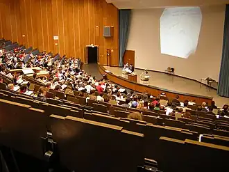 Vorlesungen gehören neben Seminaren, Tutorien, Übungen, Praktika sowie examensvorbereitenden und -begleitenden Arbeitsgemeinschaften (z. B. Diplomanden-AG)[6] in den Bereich der universitären Lehre.