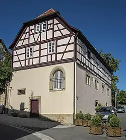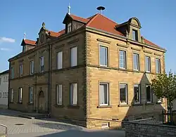 Auf dem Weg zur Kirche liegt nördlich das alte hohe Rathaus mit dem rundbogigen Konsoleneingang. Es zeugt von dem damals wahrgenommenen Recht auf eigene Verwaltung und niedere Gerichtsbarkeit und zeigt auf seiner Südseite das Fränkische Wappen mit der Jahreszahl 1584.