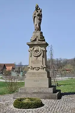 Auf dem Weg zur Fränkischen Saale, der durch eine Kastanienallee mit Ausblick gegen Osten über den Wiesengrund führt, befinden sich als Rokokobildstöcke der „Heiland an der Geißelsäule“, „der Prozessionsaltar mit letztem Abendmahl“ (eine Stiftung) sowie der „Heilige St. Nepomuk“ auf der Saalebrücke, alles Zeichen der ehemals im Dorfe tätigen Benediktinermönche.