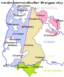 Der französische Kommissar für das Breisgau und die Ortenau, Jean Nicolas de Monard erklärte am 15. April 1806 gegenüber den Vertretern des Kurfürstentums Baden, dass er „... das gesammte Breisgau mit dessen Dependenzen übergiebt, jedoch letzteres mit Ausnahme“