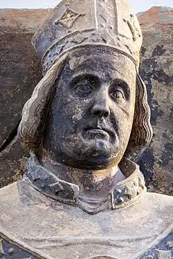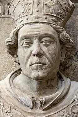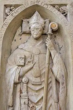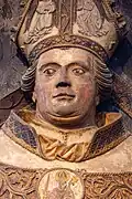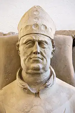| 53 | Gottfried IV. Schenk von Limpurg | 1443 | 1455 | Gottfried begann mit der Konsolidierung des Staatshaushalts und führte das Bistum relativ unbeschadet durch kriegerische Zeiten. | ![]() Ausschnitt aus dem Epitaph des Bischofs |