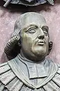 | 72 | Christoph Franz von Hutten | 1724 | 1729 | Im Vergleich zum alternativen Kandidaten Friedrich Karl von Schönborn-Buchheim mit absolutistischen Zügen galt Christoph Franz als volksnah, denn er stammte aus einer alten fränkischen, ritterlichen Familie und förderte die Marienverehrung. Aber auch er setzte große Bauvorhaben um, die mit dem Namen Johann Balthasar Neumanns verbunden sind. Dazu waren Steuererhöhungen notwendig und er bediente sich der Instrumente des Merkantilismus. | ![]() Ausschnitt aus dem Epitaph des Bischofs |