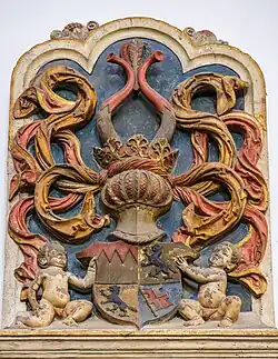 ![]() Fürstbischöfliches Wappen auf seinem Epitaph ![]() Familienwappen |