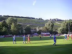 Die Sepp-Endres-Sportanlage (im Hintergrund der Würzburger Stein).