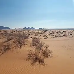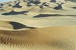 Als Wüste werden die vegetationslosen oder vegetationsarmen Gebiete der Erde bezeichnet. Nach Jürgen Schultz beträgt die Flächenbedeckung mit ausdauernden Pflanzen meistens weniger als 10 % bei Vollwüsten – in der Regel ungleichmäßig auf sehr große vegetationsfreie Flächen mit vereinzelten „Vegetationsinseln“ verteilt – und 10 bis 50 % bei Halbwüsten.[1] Ursache für Wüsten sind entweder fehlende Wärme (Kältewüste, Eiswüste) der polaren und subnivalen Regionen, Überweidung oder Wassermangel (Trockenwüste, Hitzewüste). Wüsten zählen zur Anökumene.