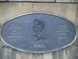 Gedenkplakette im Saint Patrick’s Park, Dublin. Als Hauptwerke werden genannt: Cathleen ni Houlihan, The Wild Swans at Coole und The Tower.