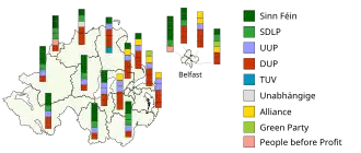 | Wahlkreis | DUP | SF | UUP | SDLP | Alliance | TUV | Green | PBPA | UKIP | PUP | Andere | Gesamt |