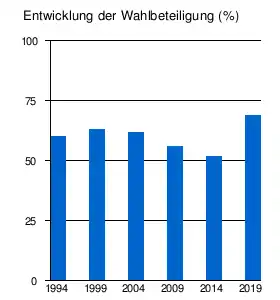 ↑ Wahlberechtigte, Wähler, Direkt- und Listenstimmen bei der Wahl zum 2. Sächsischen Landtag am 11. September 1994 im Wahlkreis 20 Freiberg 2. In: statistik.sachsen.de. Statistisches Landesamt Sachsen , abgerufen am 17. Februar 2015 .