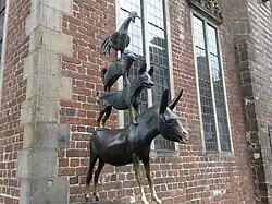 - Bremer Stadtmusikanten und Roland vor dem Rathaus in Bremen
