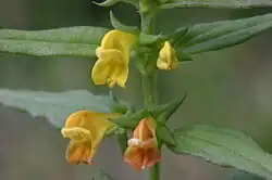 Die Kelchzähne sind dreieckig und etwa so lang wie die Blütenkronröhre, während die lanzettlichen Kelchzähne des Wiesen-Wachtelweizens die Länge der Blütenkronröhre nicht annähernd erreichen.