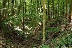 Der Wald ist strukturreich und enthält Bäume in verschiedenen Altersstufen: natürliche Verjüngungsbestände und Dickungen wechseln mit Beständen in der Optimalphase und alten Beständen mit Altholz und Totholz ab. Mosaikartig eingestreut kommen Kleinstrukturen wie Waldlichtungen, Wegsäume, kleine Waldwiesen sowie stehende und fließende Kleingewässer vor.[4]