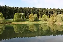 Speist bald danach in Lützenhardt auf unter 560 m ü. NHN einen weiteren Weiher am linken Ufer, 0,1457 ha.
