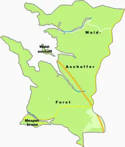 | Lage des gemeindefreien Gebiets Waldaschaffer Forst im Landkreis Aschaffenburg | ||