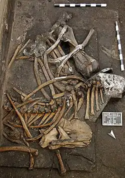 Die Fundvergesellschaftung von Feuersteinabschlägen und Knochenwerkzeugen mit den Elefantenknochen werten die Archäologen als Beleg dafür, dass sich Menschen damals direkt am Kadaver aufgehalten haben. Mit ihren Werkzeugen dürften sie Fleisch, Sehnen und Fettgewebe des toten Tieres herausgeschnitten haben[7], um es als Nahrungs- und Materialquelle zu nutzen.