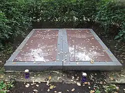 Südöstlich davon, am Eingang Wedauer Straße, befindet sich ein Gräberfeld für politisch verfolgte Opfer des Nationalsozialismus.