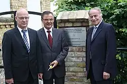 Die neue Bildungs- und Begegnungsstätte des Volksbundes Deutsche Kriegsgräberfürsorge ist von Landtagspräsident Gunter Fritsch und Volksbundpräsident Reinhard Führer am 26. Juni 2013 ihrer Bestimmung übergeben worden[7]. 1,2 Millionen Euro[8] wurden von verschiedenen Partnern in der „Alten Schule“ in Halbe während der dreijährigen Bauzeit investiert. Rund ein Drittel der Baukosten wurden dabei vom Volksbund aufgebracht. In enger Kooperation mit dem Land Brandenburg, dem Landkreis Dahme-Spreewald, dem Amt Schenkenländchen sowie der Gemeinde Halbe hat der Volksbund die Grundlage für die Umsetzung dieses Projektes und die baulichen, finanziellen, personellen und inhaltlichen Voraussetzungen für dessen Verwirklichung geschaffen.