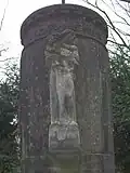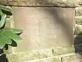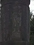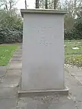 Gedenksäule (Lage) zwischen Abteilung I und II für die am 9. Juli 1917 auf der Zeche Pluto Wilhelm als Folge einer Schlagwetterexplosion tödlich verunglückten 13 Bergleute.[16]