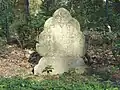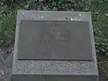 Gedenkstein (Lage) in Abteilung VI für die auf dem Waldfriedhof bestatteten, zwischen 1941 und 1945 „fern der Heimat“ gestorbenen 1031 Soldaten der Sowjet-Armee, die gefallenen Bürger der UdSSR und 241 hier beigesetzte Zivilarbeiter. Das im Juni 1949 erstmals aufgestellte, aus Sandstein in einer Quaderform geschaffene Ehrenmal wurde im Zuge der Erneuerung der Anlage in Abteilung VI 1995/1996 ausgetauscht. Dabei wurden die Inschriften beibelassen, von den Seiten her aber getauscht.[17]