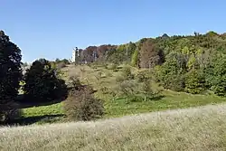 Am Rande des Naturschutzgebietes steht ein rund 19 Meter hoher Bismarckturm, der über eine Aussichtsplattform verfügt.[1][2]