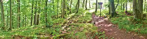 Ehemalige Toranlage vom nördlichen Teil der Anlage aus, mit Info-Tafel | ||