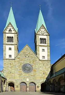 Die Wallfahrtsbasilika Mariä Heimsuchung ist eine katholische Wallfahrtskirche in Werl in Westfalen. Sie wurde am 16. Oktober 1953 von Papst Pius XII. in den Rang einer Basilica minor erhoben.[1] Das neuromanische Gebäude bildet zusammen mit der barocken alten Wallfahrtskirche, die direkt angrenzt, einen lokal wirksamen Gebäudekomplex, dessen mächtige Doppelturmfassade nach Norden und Osten weithin sichtbar ist.[2] Das Gebäude steht unter Denkmalschutz und ist unter der lfd. Nr. 100 in der Denkmalliste der Stadt Werl, Listenteil A, eingetragen.[3]