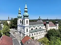 Doppelturmfassade der Wallfahrtsbasilika Maria Puchheim