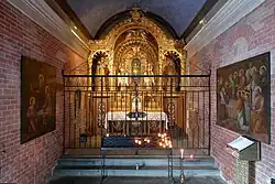Ein eingeschoßiger Rechteckbau mit abschließendem Satteldach und einem rechteckigen Eingangsportal mit Steingewände in der Längsfassade. Hinter einem schmiedeeisernen Gitter befindet sich ein neugotischer Altar. In dessen Zentrum die typische Loreto-Madonna mit dem Jesuskind – eingehüllt in die „Dalmatika“. Als Begleitfiguren sind der hl. Josef und die hl. Anna dargestellt. Die Wände erinnern an die Ziegel des Heiligen Hauses, ein Fries trennt sie vom blauen Himmel mit goldenen Sternen. Vor dem schmiedeeisernen Gitter sind drei Zinkblechgemälde aufgehängt, die Mathias Größer 1878 schuf.[9]