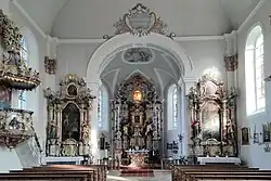Das Kircheninnere ist im Rokokostil gestaltet. Der Hochaltar stammt aus der Mitte des 18. Jahrhunderts. In der Mitte ist das Gnadenbild eingebaut. Rechts und links stehen die Heiligen Joachim und Anna, die Eltern Mariens. Eine Christusfigur an der Martersäule befindet sich an einem Nebenaltar.