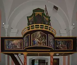 Die Orgel baute der Orgelbauer Peter Heining 1848 und wurde 1893/1895 aus der Pfarrkirche Allhaming hierher übertragen (I Man./6 Reg.).