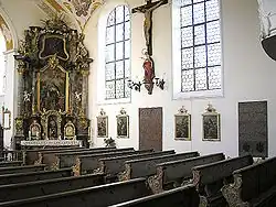 Die Rokokoausstattung wird durch die Ölbilder der Kreuzwegstationen (Franz Anton Anwander, 1773) ergänzt.