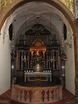 Die Sakristei im Verbindungsbau zum Kloster ist kreuzgratgewölbt und besitzt Deckenmalereien aus der Mitte des 18. Jahrhunderts. Das zentrale Bild stellt Abraham und Isaak dar. Die Wandvertäfelung und die Sakristeischränke sind ebenfalls barock. In der stuckierten Schatzkammer mit Mittelsäule wurden die eingebauten josephinischen Schatzkammer- und Sakristeischränke 1809 geplündert.