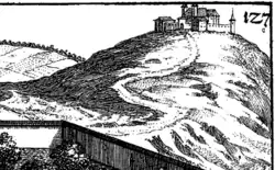 Zur Zeit der Kelten war die Bergspitze ein keltisches Kultzentrum. Später wurde der Berg der Gottesmutter geweiht und Maria Trost genannt. Die im Mittelalter auf der Bergspitze errichtete Burg wurde 1626 während des Bauernkrieges von Bauern geplündert und zerstört. Zum Dank, dass Berg 1645 von den Schweden verschont blieb, erfüllte Graf Theodorich von Rödern sein Gelübde und ließ in den Folgejahren vermutlich an der Stelle der Burgkapelle der verfallenen Burg Berg eine Kirche errichten. Aus einem Stich von Georg Matthäus Vischer aus dem Jahr 1667 geht hervor, dass der Berg baumlos war und die Kirche zwei Türme hatte.[1] Die Kirche war von einer Ummauerung und Wehrtürmen umgeben, die teilweise heute noch vorhanden sind.