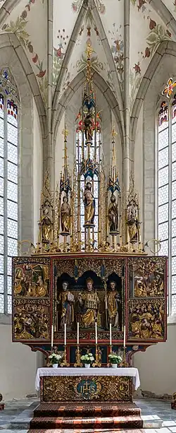 Der Hochaltar ist ein Flügelaltar, der zwischen 1519 und 1522 durch den Gurker Bischof Matthäus Lang von Wellenburg gestiftet wurde. Damals dürfte ein bereits bestehender älterer Schrein wesentlich umgearbeitet worden sein. Diese Arbeiten werden der jüngeren Villacher Werkstätte zugeschrieben.