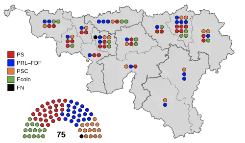- ↑ a b c d Ergebnis Wallonisches Parlament 13 Juni 1999. IBZ (Föderaler Öffentlicher Dienst Inneres), abgerufen am 28. Februar 2025.