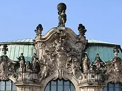 - ↑ Fritz Löffler: Der Zwinger in Dresden. Kapitel: Das Programm der Plastik und der Deckenmalerei. VEB E. A. Seemann Verlag, Leipzig 1976, S. 56.