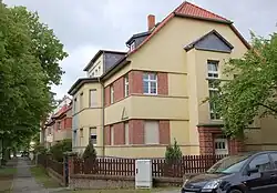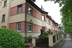 Die beiden langen Siedlungshäuser wurden von Hermann Baranke im Zeitraum zwischen 1926 und 1929 errichtet. Die Fassaden der Häuser sind verputzt und mit Verzierungen in Formen des Expressionismus versehen. Auch Fenster und Türen entsprechen zum Teil noch dem Erscheinungsbild der Bauzeit.