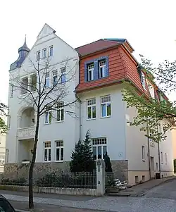 Das Gebäude wurde in den Jahren 1910/11 vom Architekten Hermann Wellmann errichtet, der zugleich auch Bauherr war. Der im Jugendstil errichtete Bau verfügt an seiner Südostecke über einen eingezogenen polygonalen Turm, der von einer Dachhaube bedeckt ist. Das übrige Hausdach ist vielgestaltig gegliedert. Am Haus befindet sich ein üppig verzierter Fenstererker.