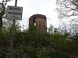 Das teilrekonstruierte Gebäude, ursprünglich ein Turm mit angebautem „Burgrest“, sollte die Ruine einer mittelalterlichen Burg darstellen. Es wurde aus romantischer Motivation erbaut sowie als Ausflugsziel. Das Ziegelmauerwerk des turmartigen neugotischen Gebäudes war ursprünglich verputzt. Der Turm diente als Aussichtsturm. Das Gebäude war als Landmarke von weither sichtbar. Ende des Zweiten Weltkriegs wurde ein Teil des Gebäudes, insbesondere der Erker und das Turmzimmer durch Artilleriebeschuss und Brandstiftung zerstört. In den Nachfolgejahren nutzten die Dessauer das Gebäude als Steinbruch. 1952 stand der Treppenturm noch und wurde bis 1954 abgetragen und ein Notdach aus Beton wurde auf das Hauptgebäude gesetzt. In der DDR zerfiel die Anlage weiter und wurde unter anderem zum Bergsteigen genutzt. In den 1990er Jahren machte Vandalismus dem Gelände zu schaffen. Die Sichtachsen wuchsen zu.