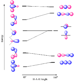 Nach Vorarbeiten Robert Mullikens veröffentlichte Arthur Donald Walsh 1976 Interpretationen zu der Thematik. Er trug Ionisierungsenergien gegen Bindungswinkel auf.