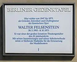 Walter Felsenstein (* 30. Mai 1901 in Wien; † 8. Oktober 1975 in Ost-Berlin) war ein österreichischer Regisseur. Er gründete 1947 die Komische Oper Berlin und war bis 1975 deren Intendant.