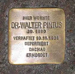 - ↑ Friedhelm Buschbeck: Dr. Walter Pintus. In: Stolpersteine-Ludwigsburg.de. Abgerufen am 5. März 2024.