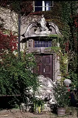- ↑ Kostenvoranschlag Resch (vom 8. März 1913) über „zweimalige Ausführung einer Florafigur als Bekrönung des Portals am runden Turm in Muschelkalk (Ausführung einschließlich Steinmaterial und Steinmetzarbeit an der Rückwand, jedoch ohne Versetzen 585,- (Mark)“) in den Archivbeständen zum Bau des Botanischen Instituts im Staatsarchiv München