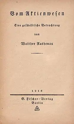 - Vom Aktienwesen. Eine geschäftliche Betrachtung. Berlin 1917.