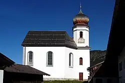 Die Kirche entstand im Jahr 1720 und wurde am 11. September 1721 durch den Fürstbischof Johann Franz Eckher von Kapfing und Liechteneck geweiht. In der Mitte des 18. Jahrhunderts baute Anton Lid aus Partenkirchen einen Beichtstuhl ein; 1843 kam eine Orgel von Joseph Pröbstl hinzu. Im Inneren befindet sich ein Hochaltar des Bildhauers Andreas Onich, der Anna selbdritt darstellt. Über dem Hochaltar befindet sich ein Bild der Heiligen Familie. An den Seiten sind Figuren des heiligen Rochus und heiligen Sebastian, der heiligen Notburga und des heiligen Isidor in Kostümen der damaligen Zeit zu sehen. Das Bauwerk wird im 21. Jahrhundert mit Hilfe von Fördermitteln von Privatpersonen saniert. Im Sommer 2020 sollen die Glocken restauriert werden.[2]